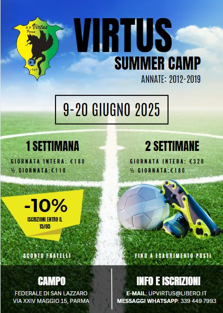 Il camp si svolgerà presso il Campo Federale di San Lazzaro in via XXIV Maggio,15 Parma dal 9 Giugno al 13 Giugno e dal 16 Giugno al 20 Giugno.
