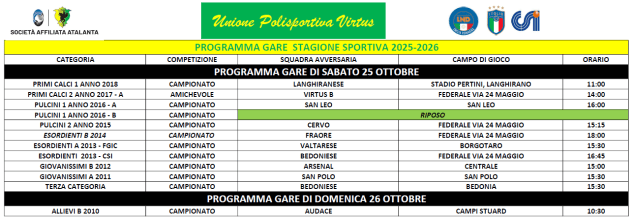 Programma gare weekend 25-26 ottobre 2025 Immagine 22 ottobre 2025upvirtus Condividi:Tweet Fai clic per condividere su WhatsApp (Si apre in una nuova finestra) WhatsApp Mi piace Caricamento... Correlati